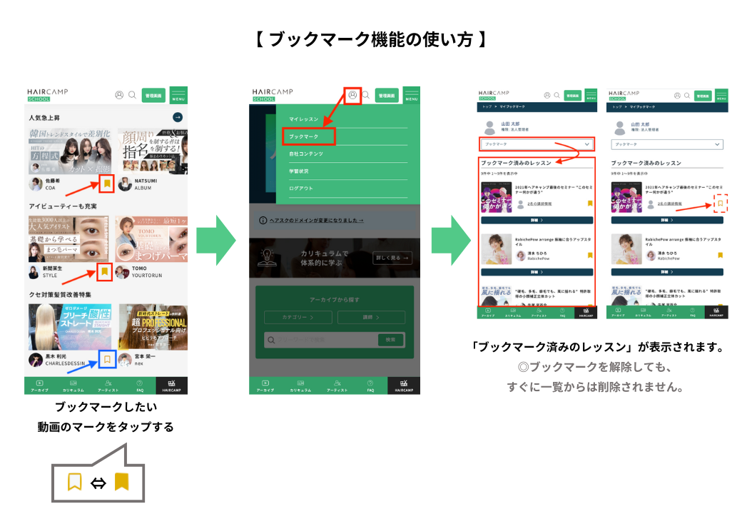◎ブックマークを解除したい場合は、黄色のリボンをもう一度タップしてください。