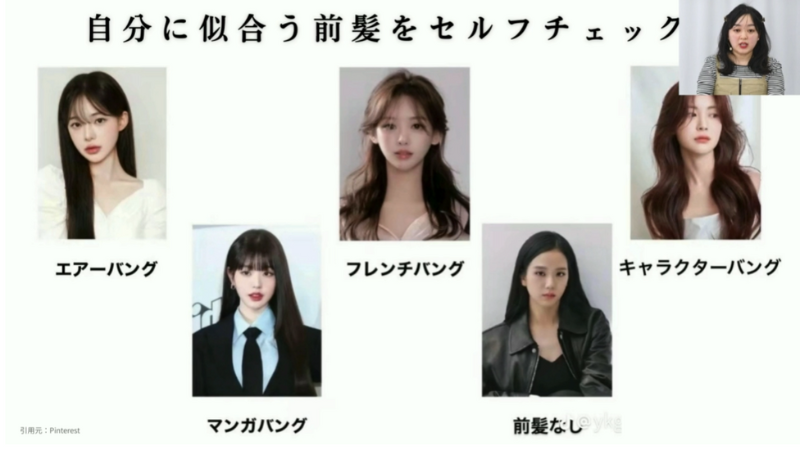 前髪のデザインは52種類程あるとあゆみ先生は話していて、これらのデザインをお客様に合わせていく必要があります。