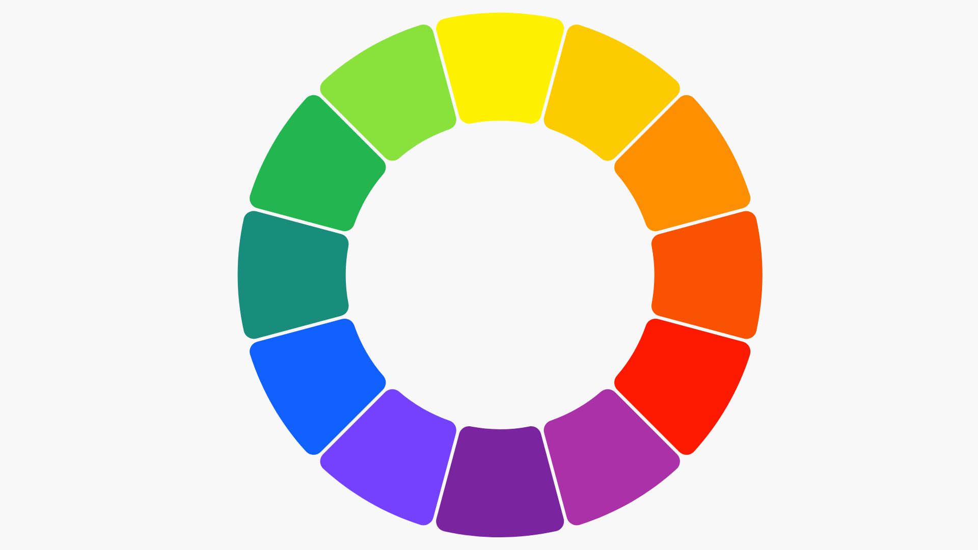 (※人の目が視認できる色みを、円状にならべたものを色相環と呼ぶ。赤、橙、黄、緑、青、紫というように連続的に円環状にしたものを色相環といいます)