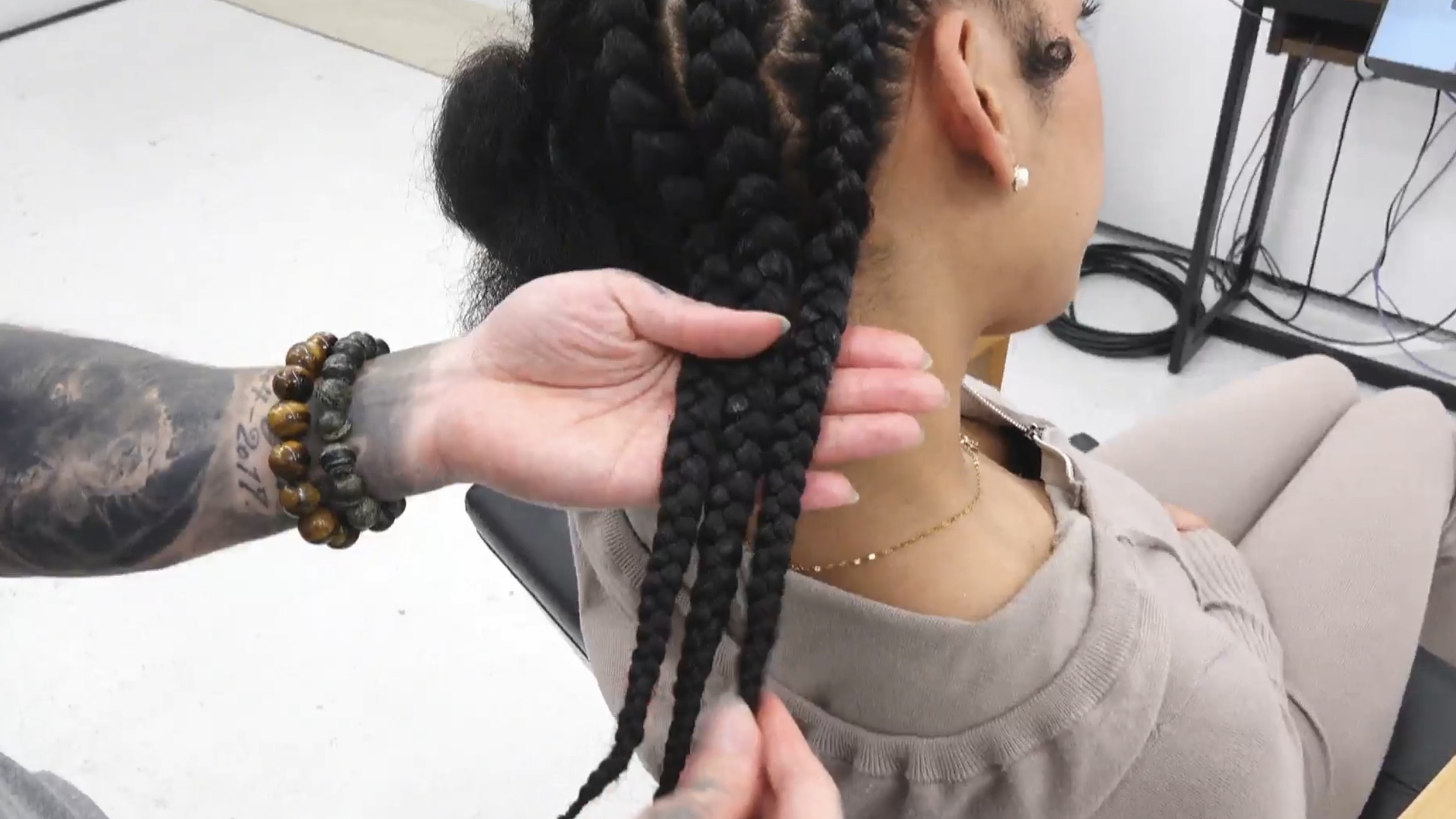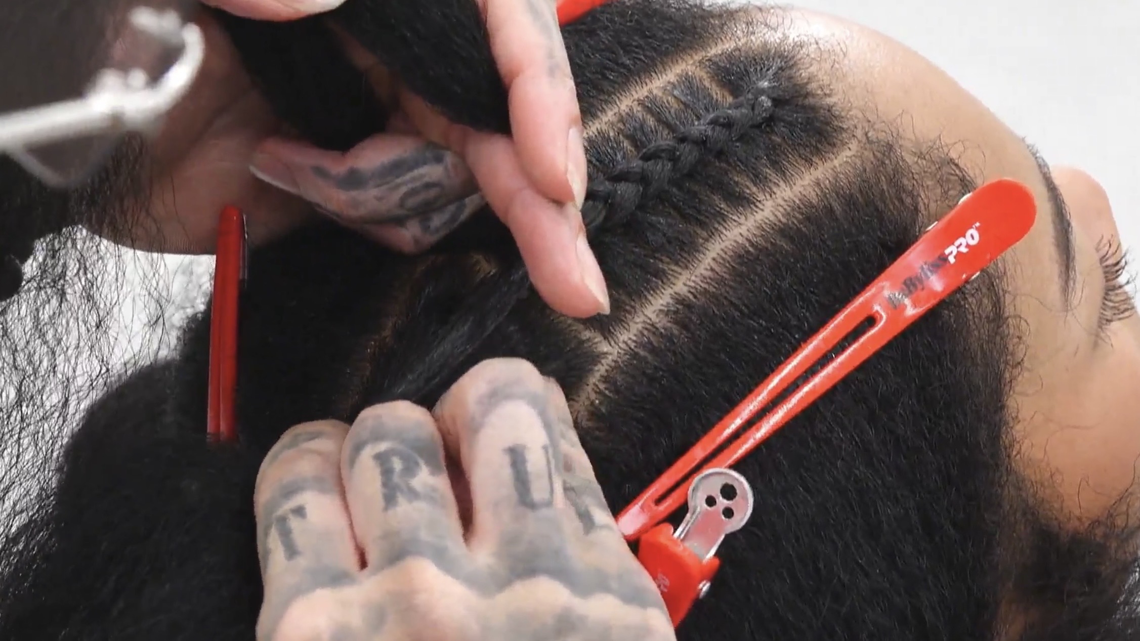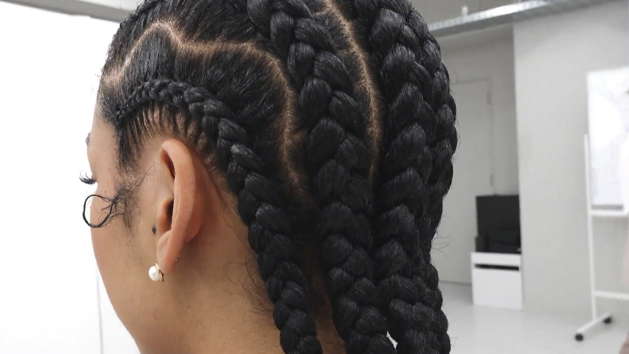 ・通常の編み込みからプロのようなコーンロウに仕上げるまでの全工程