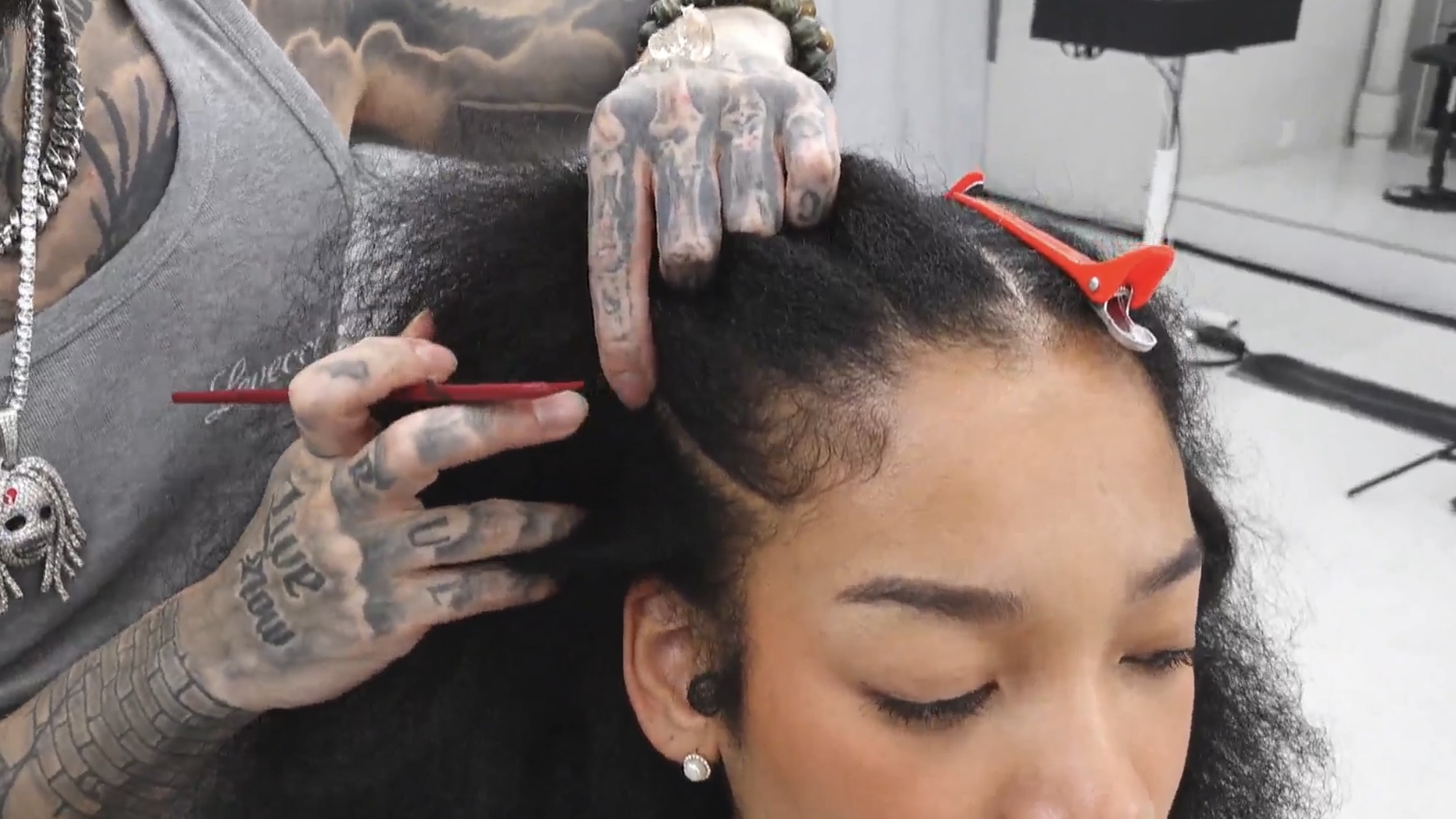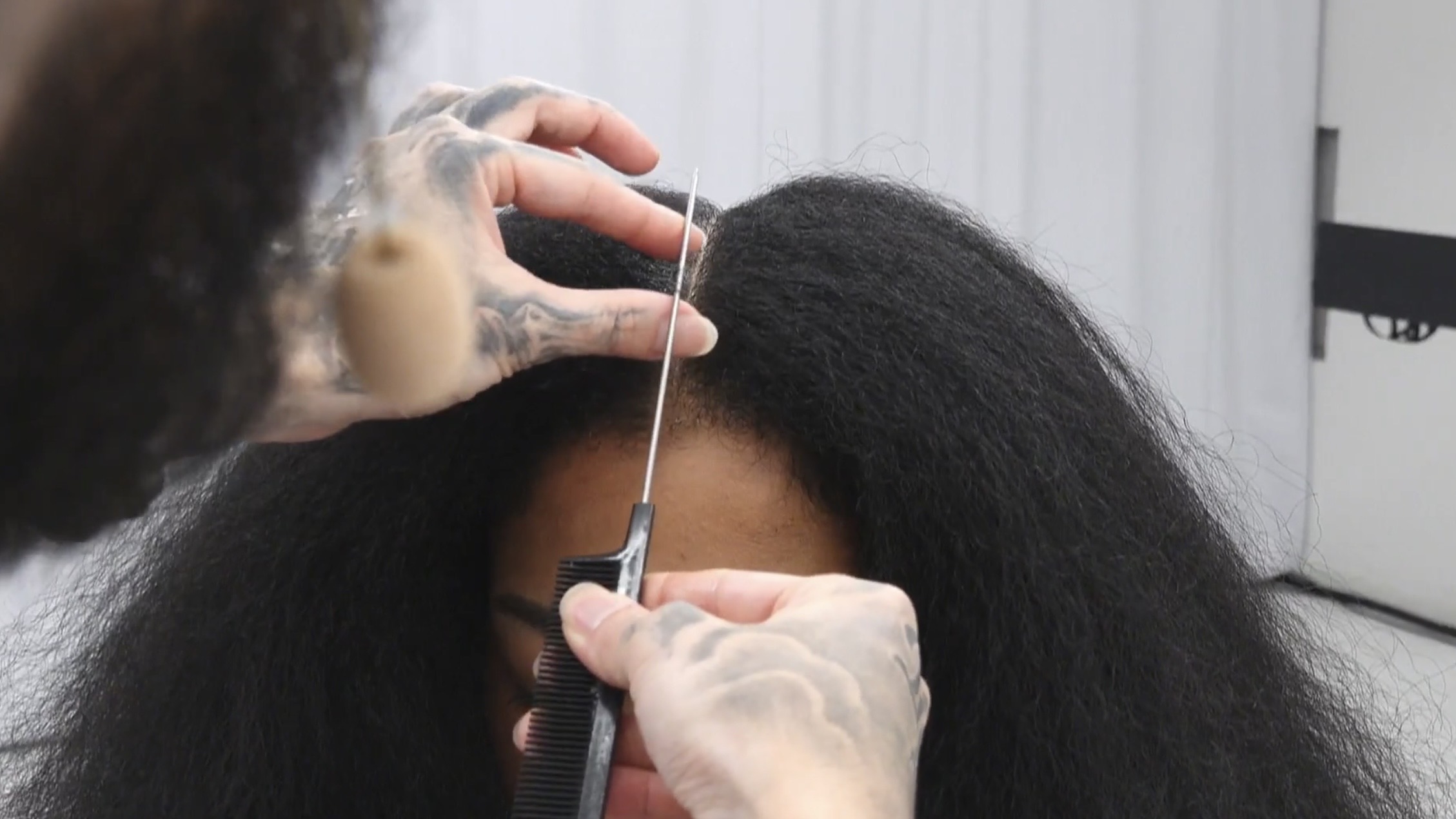 コーンロウといえば、美しいセクショニングが仕上がりを大きく左右します。