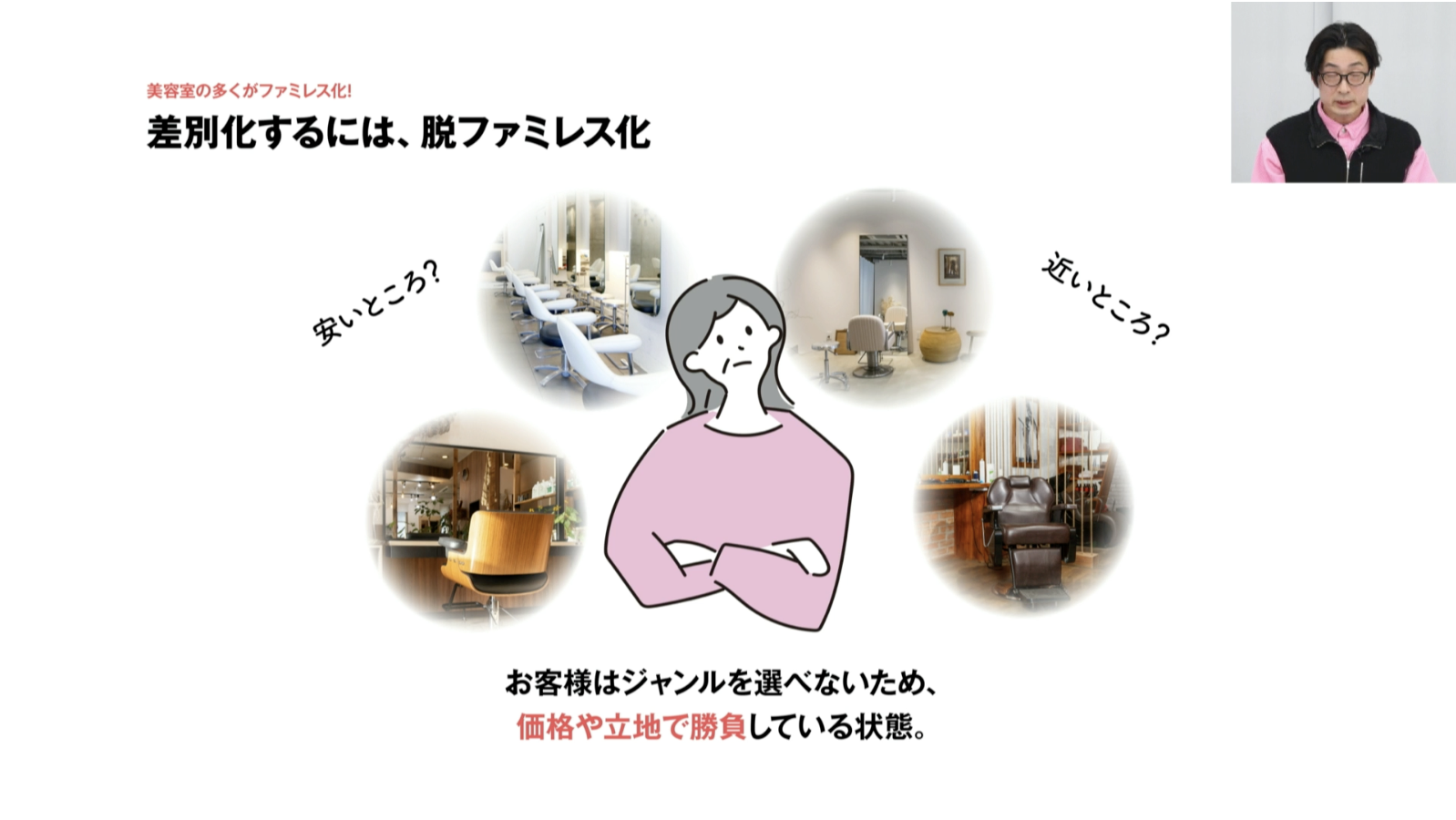 だから結局、立地と価格で選ばれてしまい、有利なサロンとそうではないサロンが出てくると太田先生はお話されていました。