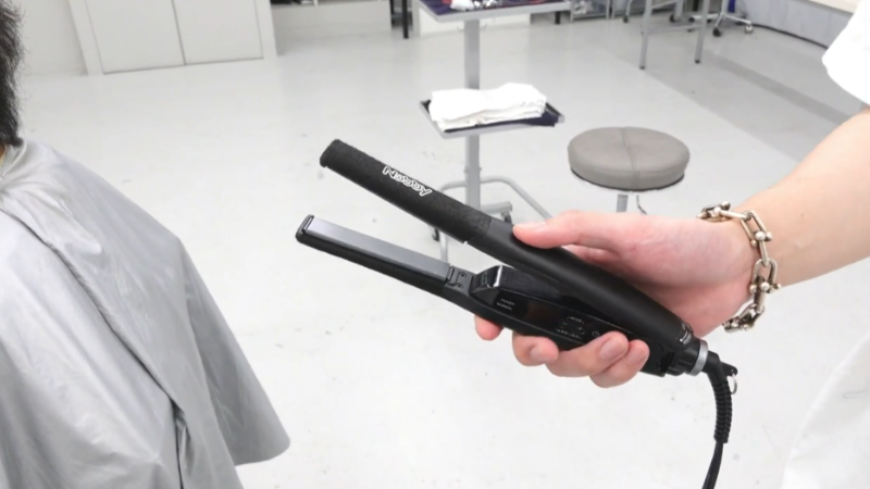 使用するのは角が立っている15mm幅のアイロンで、温度はバージン毛で180°C、軟毛は175°Cが目安です。
