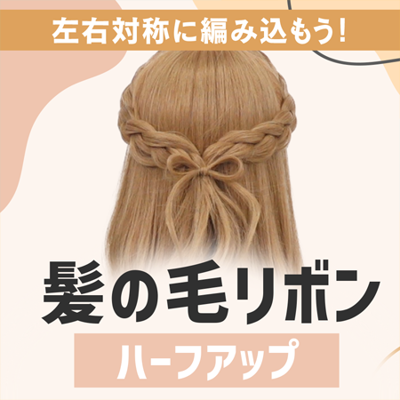 髪の毛リボンハーフアップ